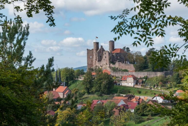 Ein kurzer Abzweig auf die Hansteinstraße führt Sie zum Zweiburgenblick. Zurück in Rimbach verläuft die Wanderung auf einem Abschnitt des Kolonnenwegs. Dieser ist Teil des TOP Wanderwegs am „Grünen Band“. Zuletzt umrunden Sie den bewaldeten Burgberg bis zu Ihrem Ausgangspunkt in Bornhagen.