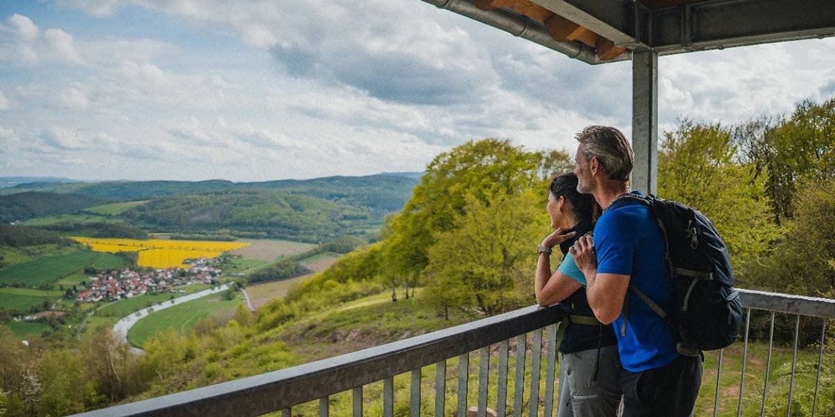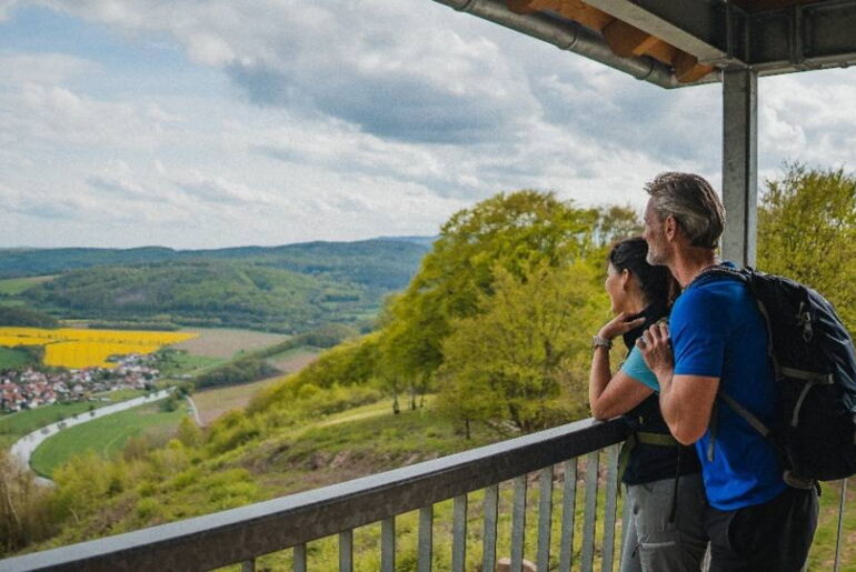 Sie laufen weiter auf dem Kolonnenweg bis zum Aussichtspunkt „Grenze“. Der höchste Punkt Ihrer Tour ist am 562 Meter hohen Hohestein erreicht. Hier haben Sie einen guten Blick auf die ehemalige Grenzanlage.