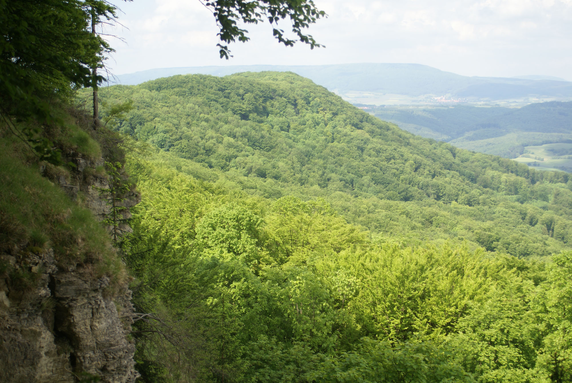 In dem 245 ha großen Waldnaturschutzgebiet Hessische Schweiz breitet sich auf einem schmalem Bergplateau schöner Buchenmischwald über ausgedehnte Pflanzenteppiche aus. Das FFH-Gebiet ist Teil des Europäischen Schutzgebietsnetzes Natura 2000 und wichtiges Bindeglied im Biotopverbund Grünes Band, das entlang der ehemaligen deutsch-deutschen Grenze verläuft. Märzenbecher, Waldgoldstern, Seidelbast, Seggenarten, Anemonen, Maiglöckchen und Bärlauch erfreuen die Wanderer im Frühjahr. Im Sommer blühen Wildkräuter, die seltene Türkenbundlilie und viele besondere Orchideen, im Herbst begeistert die einmalige Laubfärbung. Der Premiumweg Hessische Schweiz P4 führt auf ihrer meist pfadigen Strecke immer wieder an steile Felskanten mit betörenden Ausblicken nach Westen, Süden und Osten. Sie verbindet alle Sehenswürdigkeiten der Hessischen Schweiz miteinander. Wolfstisch, Pferdeloch, Salzfrau, Grünes Band, Hörne, Schöne Aussicht und Silberklippe können auf dem 15,5 km langen Rundweg auf einmal oder in drei Schlaufen an mehreren Wandertagen besucht werden. Nehmen Sie Rucksackverpflegung mit. Einkehr :  Kochsberg, Europa-Akademie, Kochsberg 1, 37276 Meinhard-Grebendorf Tel. 05651 3394060, E-Mail Naturhotel Hessische Schweiz, 37276 Meinhard-Hitzelrode, Tel. 05651 5711 Gasthaus Leib und Seele, Meinhardsruh 1, 37276 Meinhard-Neuerode, Tel. 05651 2277446 Übernachtung: Kochsberg, Europa-Akademie, Kochsberg 1, 37276 Meinhard-Grebendorf Tel. 05651 3394060, E-Mail NaturFreunde Haus am Meinhard, Neuerode, Tel. 05651 50809 Naturhotel Hessische Schweiz, 37276 Meinhard-Hitzelrode, Tel. 05651 5711 Weitere Übernachtungsmöglichkeiten: www.naturparkfrauholle.land