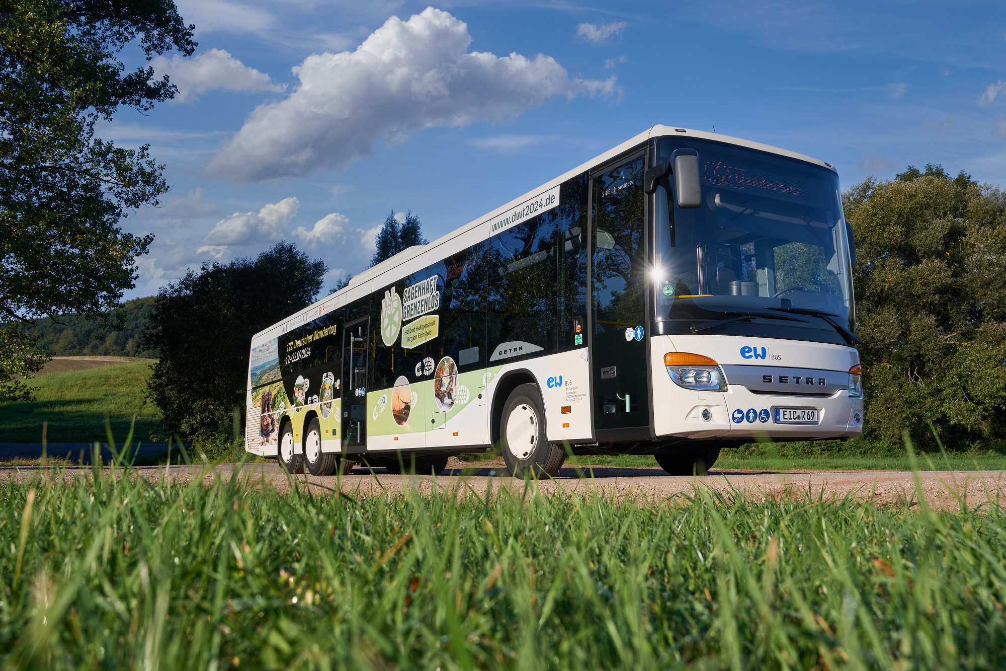 In einem knappen Jahr ist es soweit - der 122. Deutsche Wandertag 2024 in Heilbad Heiligenstadt und der Region Eichsfeld beginnt. Um das vom 19. bis 22.09.2024 stattfindende Großereignis zu bewerben und die Eichsfelderinnen und Eichsfelder einzustimmen, verkehrt jetzt ein moderner Linienbus der Eichsfeldwerke in der Region.