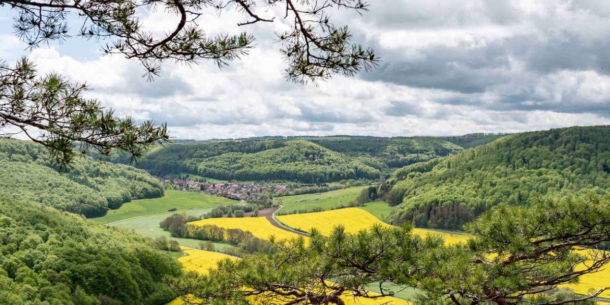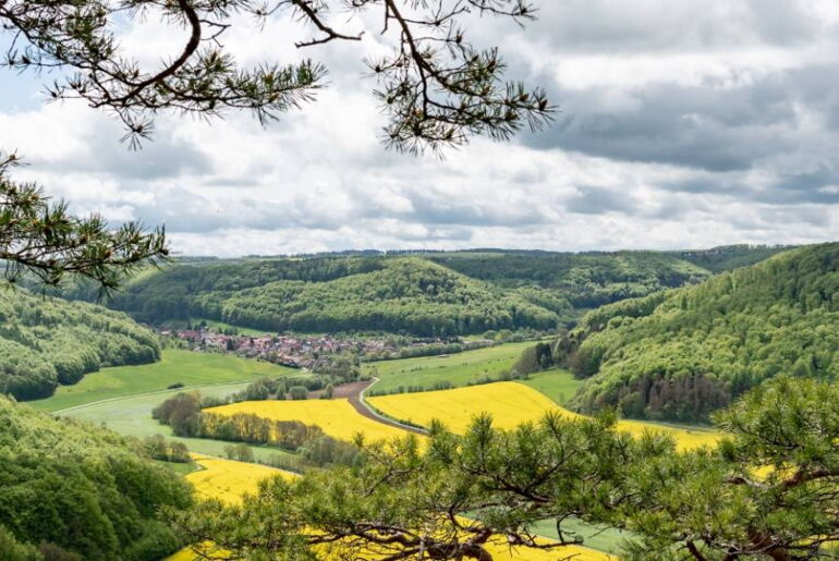 Am Industriedenkmal Kalkbrennofen vorbei, laufen Sie weiter zum Gleitschirmstarterpunkt am Grenzeck. Der Panoramablick, der sich Ihnen hier bietet, ist sagenhaft! Über das Eibenloch gelangen Sie schließlich zur Pfaffschwender Kuppe.