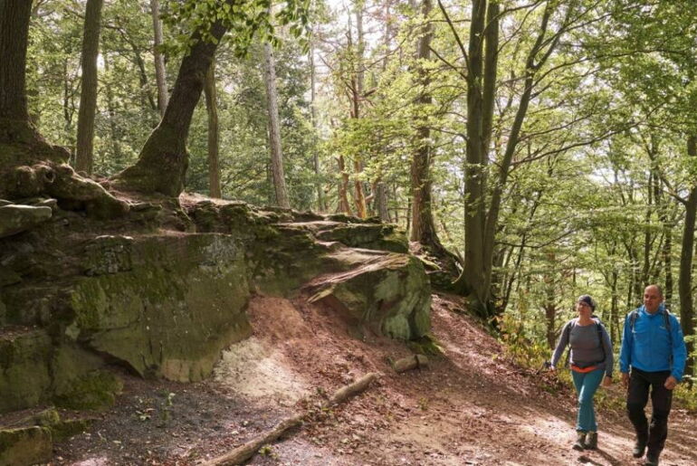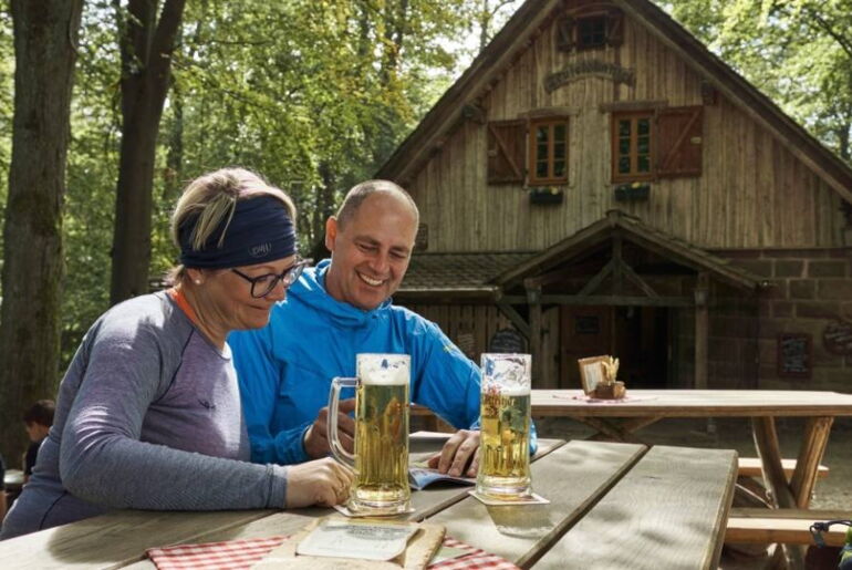 Anschließend wandern Sie weiter zur sagenumwobenen Teufelskanzel. Hier hat bereits der Teufel selbst eine Rast ein- und diesen Felsbrocken abgelegt. Sie genießen den Ausblick ins Werratal und hausgemachte Spezialitäten im urigen Waldgasthof Teufelskanzel.