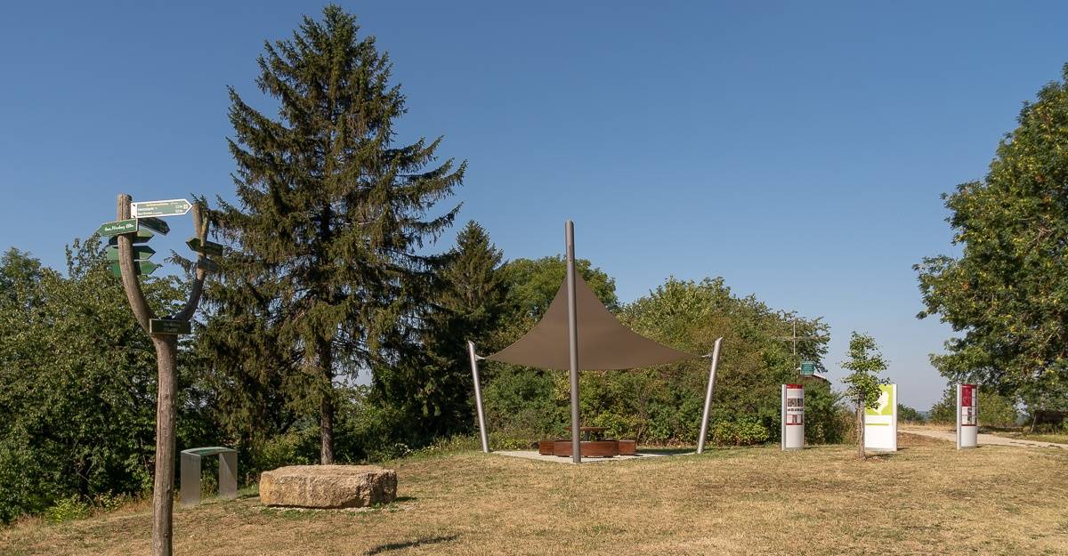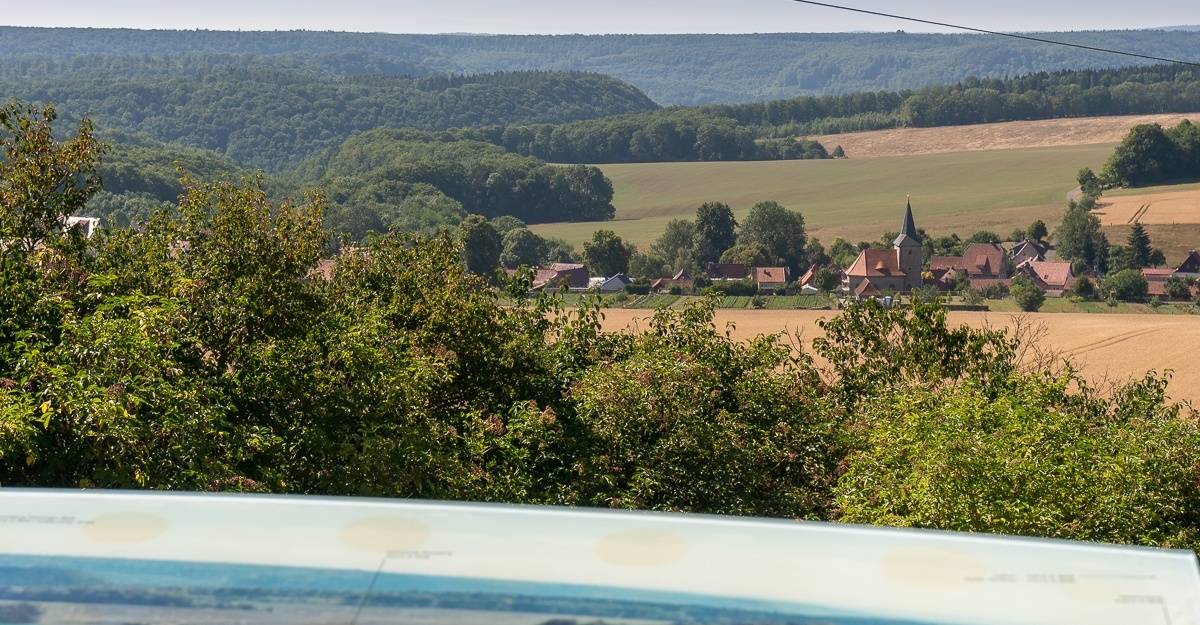 Am Ende des Tals erreicht der Wanderer den Warteberg. Die Anhöhe bietet einen wunderbaren Blick hin zum Thüringer Wald im Süden und dem Brocken im Norden. Nach math. Bestimmungen der Universität Bonn befindet sich der Mittelpunkt Deutschlands auf dem 516 Meter hohen Warteberg.
