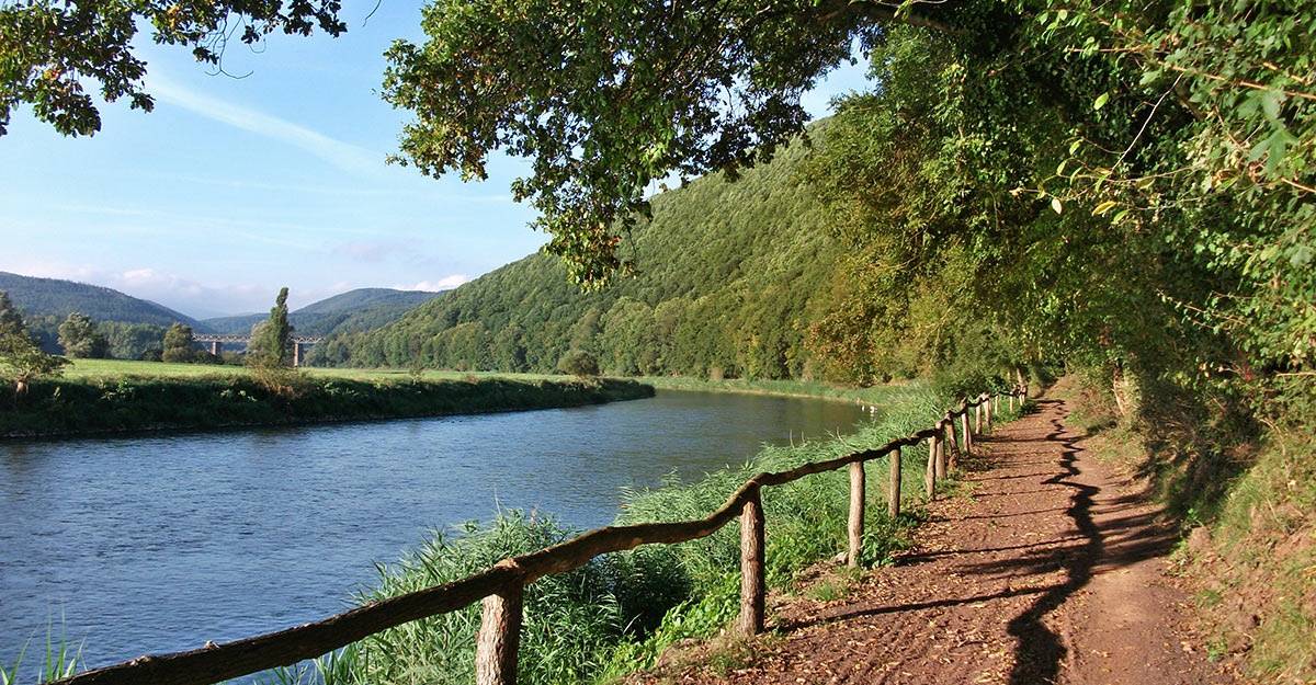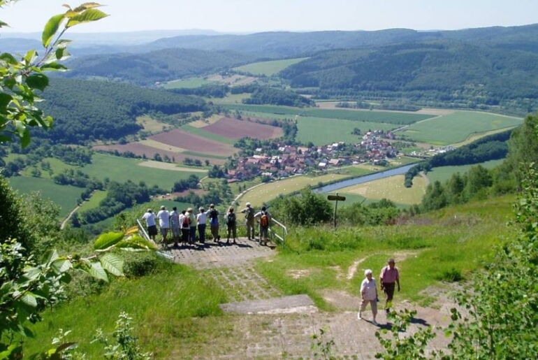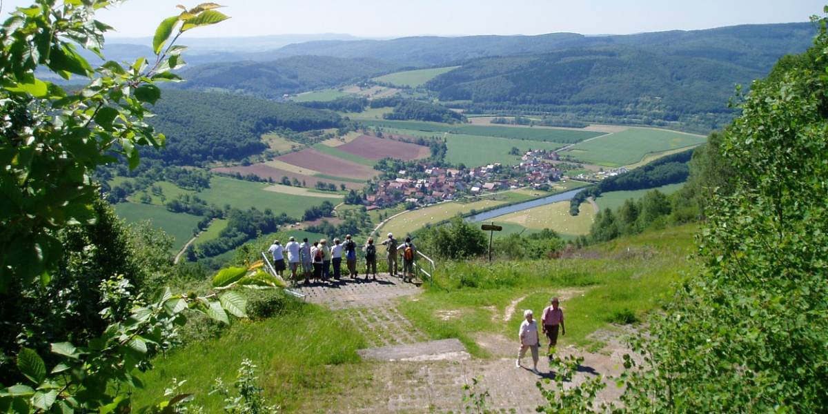 Im Anschluss laufen Sie weiter zum Ministerblick mit sagenhaftem Ausblick ins Werratal. Nun folgt der Abstieg ins Tal auf dem ehemaligen Kolonnenweg nach Lindewerra.