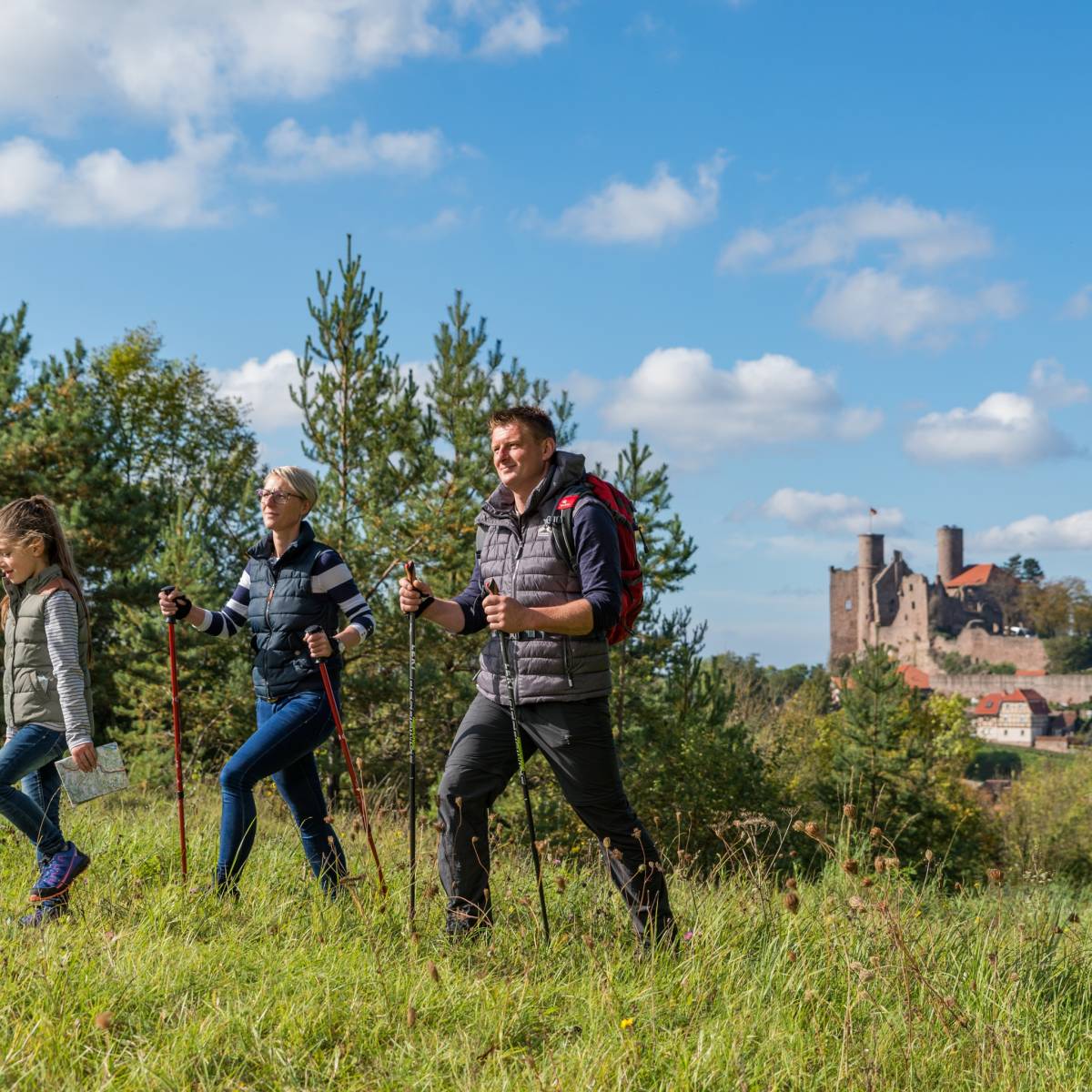 Ihre Wanderung startet in Bornhagen und führt Sie ein Stück entlang der Straße nach Werleshausen, bevor Sie das „Grüne Band“ betreten. Nach etwa zwei Kilometern erreichen Sie die Burg Hanstein, eine der schönsten Burgruinen Mitteldeutschlands. Hier erfahren Sie Wissenswertes zur Burg.