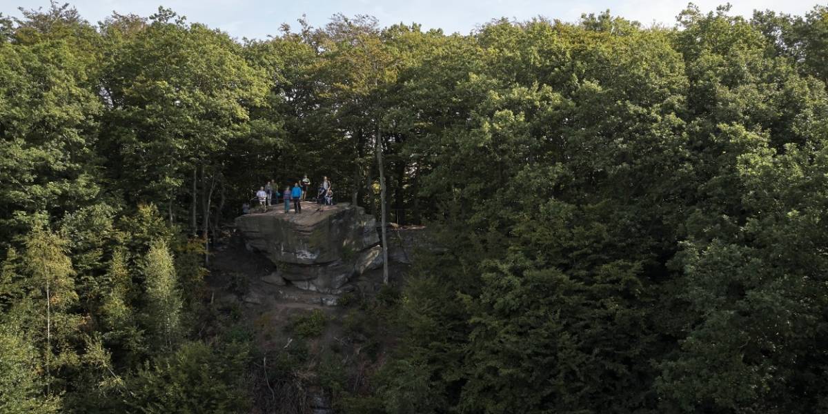 Von hier aus führt Sie der Kammweg steil bergauf bis zur sagenumwobenen Teufelskanzel auf 452 Meter Höhe. Genießen Sie den sagenhaften Ausblick auf die Werraschleife bei Lindewerra. An der Stelle, an der der Teufel ein Nickerchen gehalten haben soll, können Sie sich zur Rast niederlassen. Wenn Sie möchten, gern auch im urigen Wirtshaus Teufelskanzel.